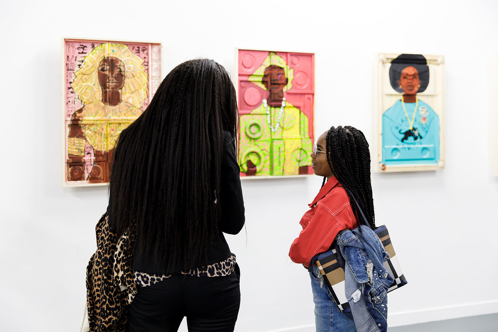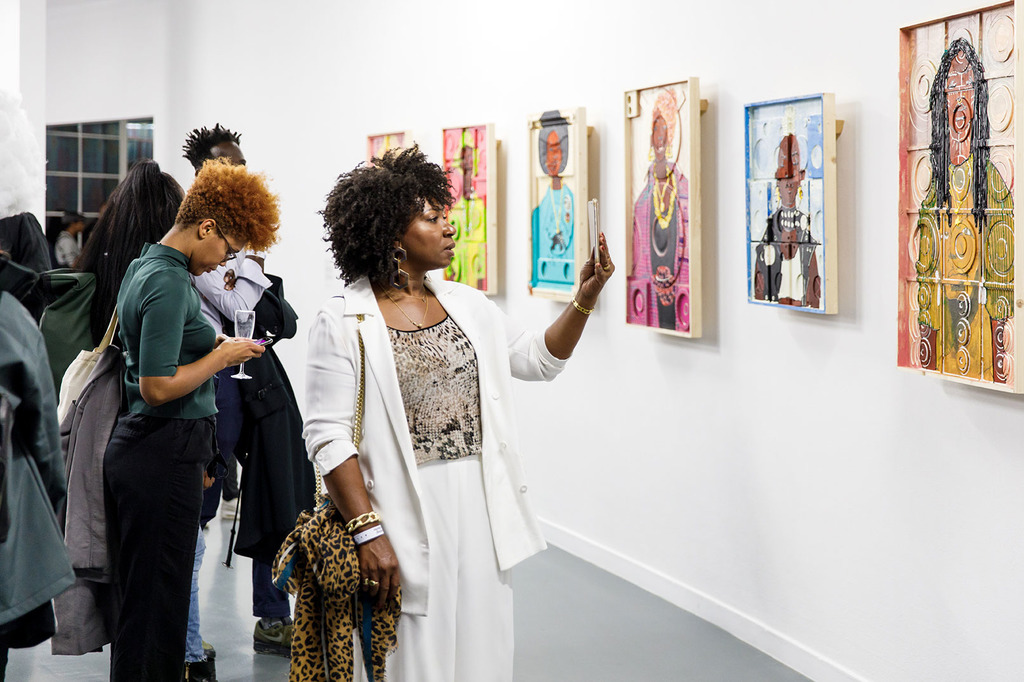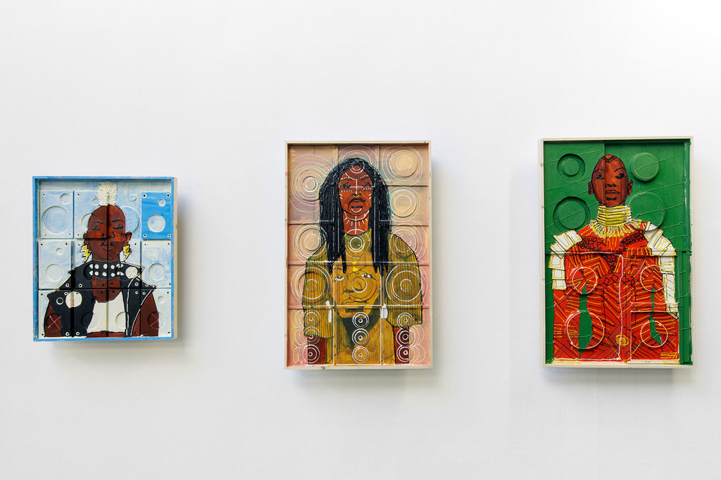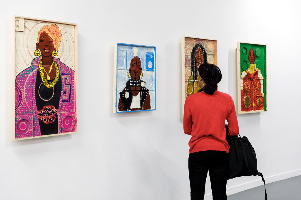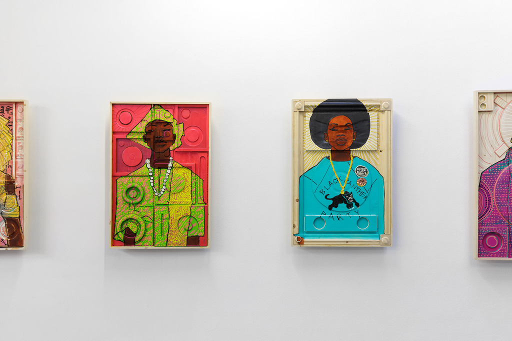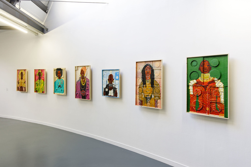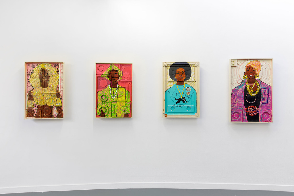The Sabrina Starke Sound System (2018) is a project by Brian Elstak in collaboration with Ellik Bargai. It's an ode to many generations of powerful black women in their role as creators, guardians, activists and queens. In the portraits, Sabrina Starke’s face is recognisable. The panels are also an ode to the music that has bumped through the speakers and boom boxes over the past decades, forming the soundtrack to many lives around the world.